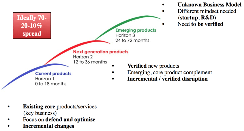 To první se ve firmách běžně děje a často je to jediné, na co je kladen důraz. To druhé jsou nastupující produkty a služby s ověřeným a fungujícím byznys modelem, tedy už vydělávající. No a to třetí jsou produkty a služby, na kterých by měla firma stát v budoucnu a je třeba je teprve najít, včetně fungujícího byznys modelu. Rozhodně není možné mít pro jejich zkoumání a ověřování připravenou byznys case, jak manažeři vyžadují. To jen ukazuje na neporozumění těmto odlišnostem a potvrzuje, že se často na firmy díváme pouze jedinou optikou H1.